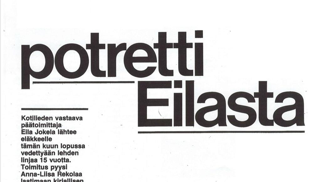 Kotilieden vastaava päätoimittaja Eila Jokela jäi eläkkeelle vuonna 1978. Kotiliesi julkaisi vuonna 1978 muotokuvan Eilasta. Eila Jokelan äidin-äiti Maria Magdaleena Mölläri on Rautiosaaren…